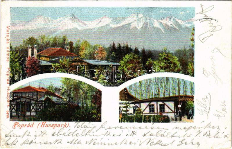 Leírás: 1901 Poprád (Magas-Tátra, Vysoké Tatry), Huszpark kávéház. Matejka Vilmos 6498. / park, café (EB)