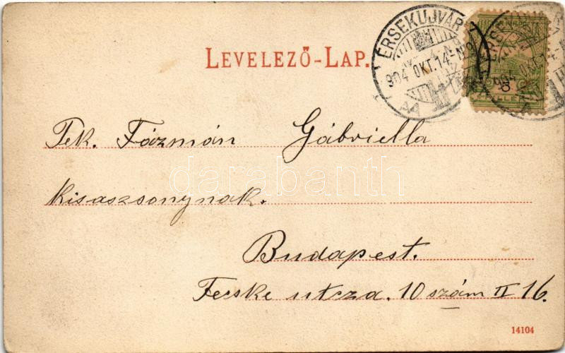 Leírás: 1904 Érsekújvár, Nové Zámky; Flenger intézet, zsinagóga. Conlegner J. és Fia kiadása / street view, synagogue (fl)