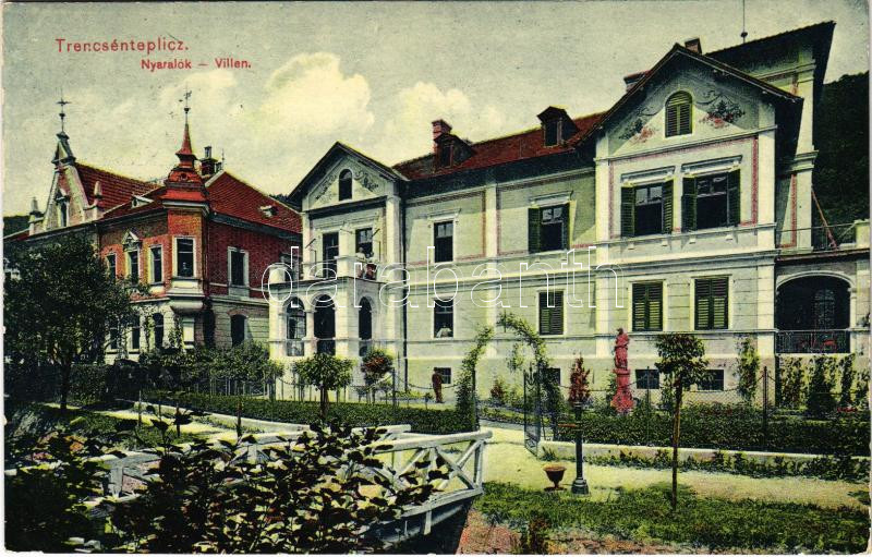 Leírás: 1910 Trencsénteplic, Trencianske Teplice; Nyaralók. Wertheim Zsigmond kiadása / Villen / villas