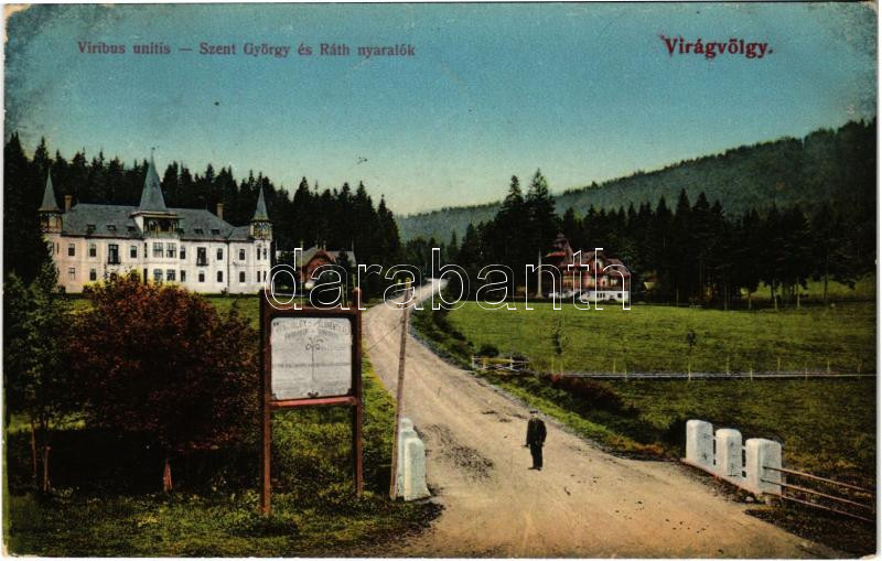 Leírás: 1913 Tátra, Tatry; Virágvölgy (Rózsavölgy), Blumental, Kvetnica; Viribus Unitis, Szent György és Ráth nyaralók / villas (EK)