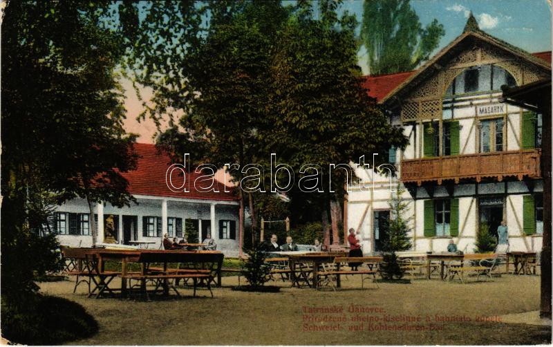 Leírás: 1925 Gánóc, Gansdorf, Gánóc-gyógyfürdő, Kúpele Gánovce, Gánovce; Tatranské Ganovce, Prirodzene uheino-kiselinné a bahniste kúpele / Schwefel- und Kohlensäuren-Bad / Kénfürdő és szénsavfürdő, Masaryk nyaraló / spa, sulfur bath, villa (EK)
