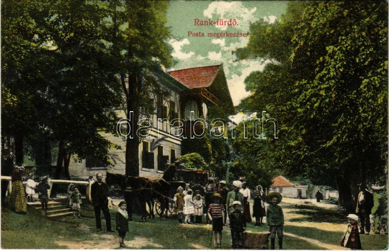 Ránkfüred, Rank-Herlány, Ránkherlány, Rank Herlein, Herlany (Kassa, Kosice, Kaschau); Posta megérkezése, postakocsi. Nyulászi Béla kiadása / when the post arrives, post carriage