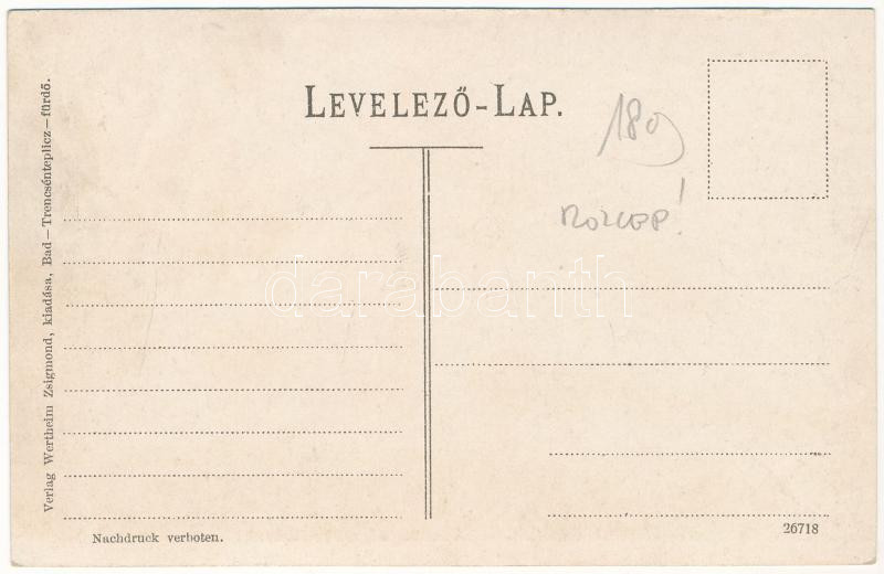 Leírás: Trencsénteplic, Trencianske Teplice; Szanatórium. Wertheim Zsigmond kiadása / sanatorium (ázott / wet damage)