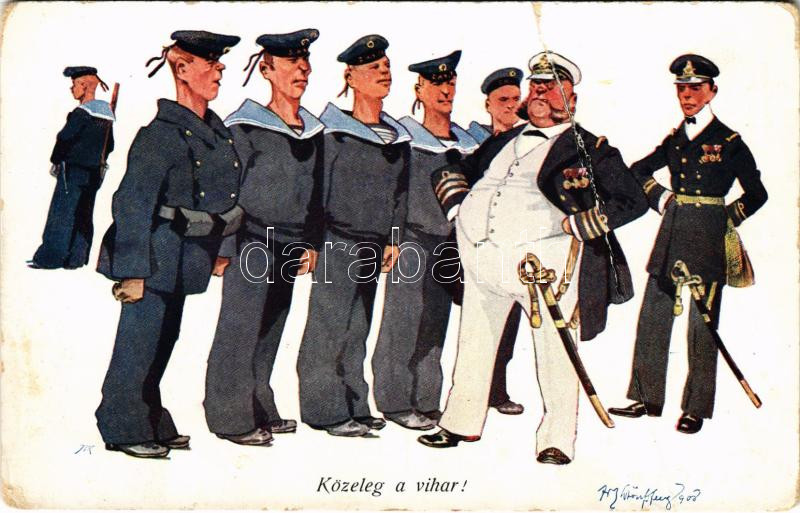 Leírás: Közeleg a vihar! Matróz humor / K.u.K. Kriegsmarine Matrose / Austro-Hungarian Navy, marine humour art postcard, naval officers, mariners. B.K.W.I. 441-11. s: Fritz Schönpflug (fa)