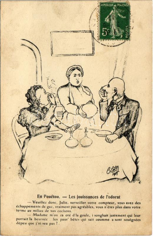 Leírás: En Pouétou. Les jouissances de l'odorat / "The pleasures of smell" French humour art postcard s: C. Lestin (fl)