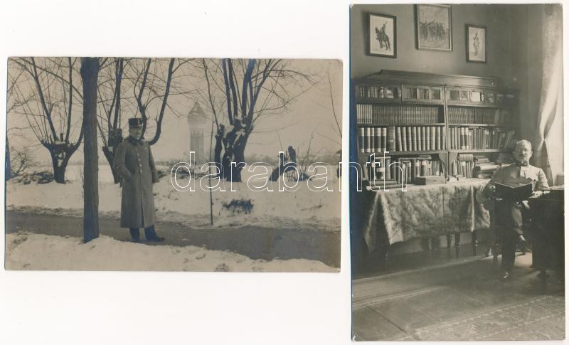 1913 Temesvár, Timisoara; Saly Guszti osztrák-magyar magas rangú katonatiszt szobájában és téli séta közben / K.u.k. Austro-Hungarian military high ranking officer in his room and on a walk in winter. photo - 2 db eredeti fotó képeslap / 2 original photo postcards