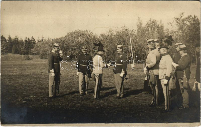 Leírás: 1913 Temesvár, Timisoara; osztrák-magyar magas rangú katonatisztek találkozója, kakastollas kalapban / K.u.k. Austro-Hungarian military high ranking officers. photo