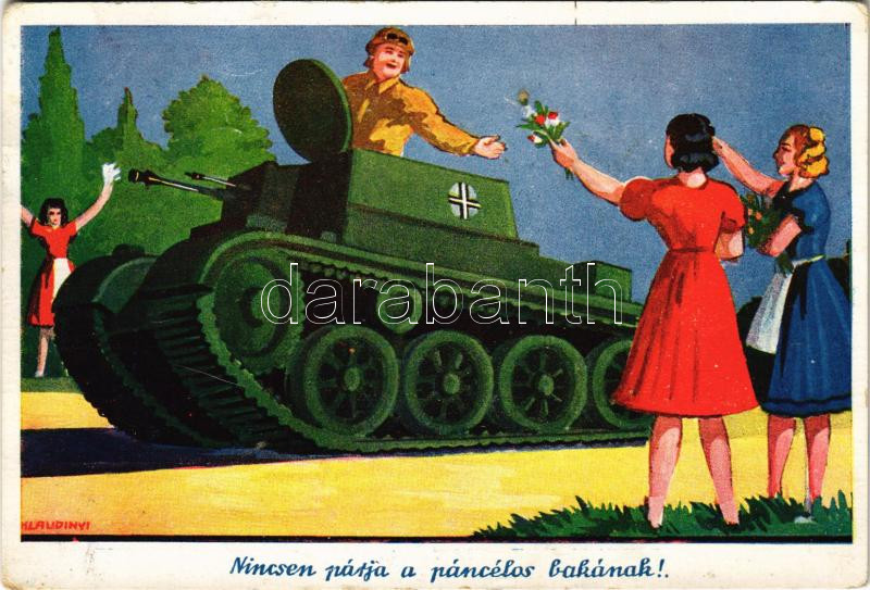 1941 Nincsen párja a páncélos bakának! / WWII HUngarian military humou... https://www.darabanth.com/hu/428-Gyorsarveres/428.0/Kepeslapok/Katonai~1500031/1941-Nincsen-parja-a-pancelos-bakanak-WWII-HUngarian-military-humour-s-Klaudinyi~II2745900