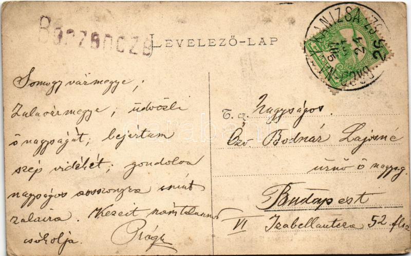 1907 Berzence, Gróf Festetics vadászkastélya és a kis kastély. Mérei Ignácz kiadása 110. sz. + "BROD - NAGY-KANIZSA 26. SZ." vasúti mozgóposta bélyegző (EK)