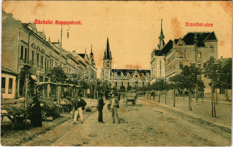 1908 Kaposvár, Erzsébet utca, piac árusokkal. W.L. 2565. (EK) https://www.darabanth.com/hu/428-Gyorsarveres/428.0/Kepeslapok/Magyarorszag~1500003/1908-Kaposvar-Erzsebet-utca-piac-arusokkal-WL-2565-EK~II2743755
