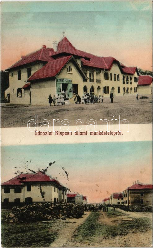 1912 Budapest XIX. Kispest, Állami munkástelep, Szabó István üzlete https://www.darabanth.com/hu/428-Gyorsarveres/428.0/Kepeslapok/Magyarorszag~1500003/1912-Budapest-XIX-Kispest-Allami-munkastelep-Szabo-Istvan-uzlete~II2741306