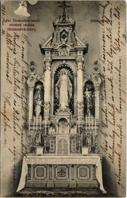 1923 Hódmezővásárhely, Szent Domonkos-rendi nővérek zárdája, oltár rés... https://www.darabanth.com/hu/428-Gyorsarveres/428.0/Kepeslapok/Magyarorszag~1500003/1923-Hodmezovasarhely-Szent-Domonkos-rendi-noverek-zardaja-oltar-reszlet-EK~II2737852