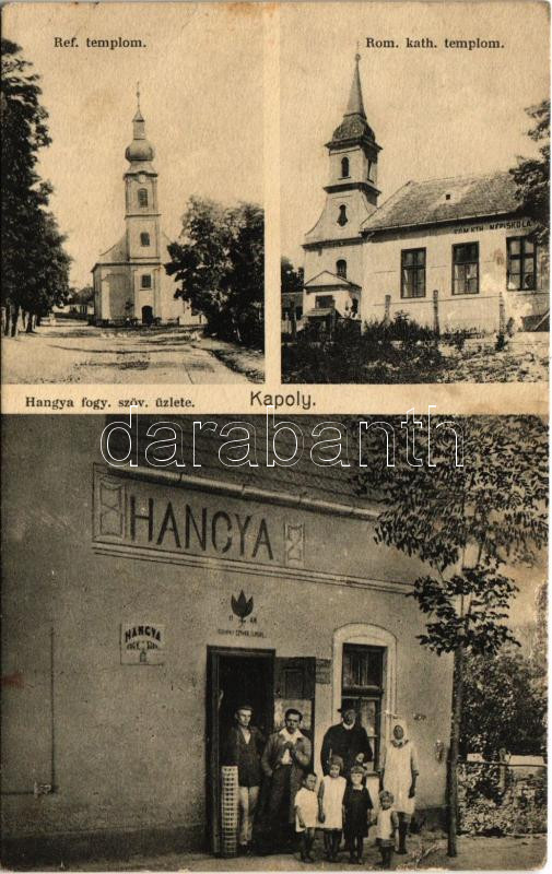 1930 Kapoly, Református templom, Római katolikus templom és iskola, Ha... https://www.darabanth.com/hu/428-Gyorsarveres/428.0/Kepeslapok/Magyarorszag~1500003/1930-Kapoly-Reformatus-templom-Romai-katolikus-templom-es-iskola-Hangya-szovetkezet-uzlete-~II2737372