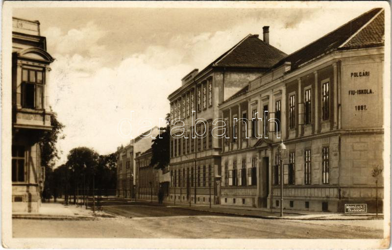 Leírás: 1932 Szombathely, Zrínyi Ilona utca, Polgári fiú iskola. Weinstock E.
