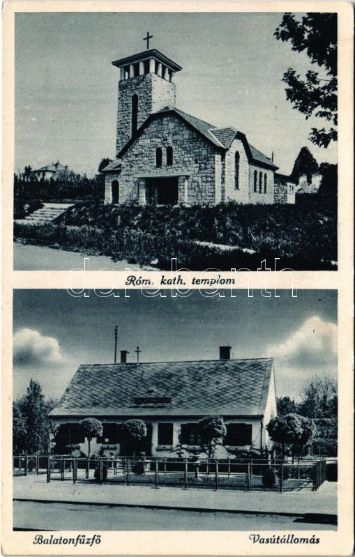 Leírás: 1937 Balatonfűzfő, Római katolikus templom, vasútállomás (fl)