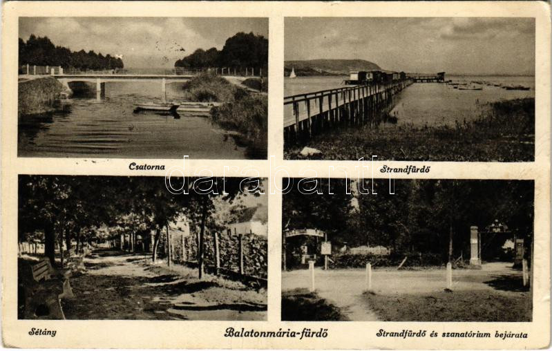 1940 Balatonmária-fürdő, csatorna, strandfürdő, sétány, szanatórium be... https://www.darabanth.com/hu/428-Gyorsarveres/428.0/Kepeslapok/Magyarorszag~1500003/1940-Balatonmaria-furdo-csatorna-strandfurdo-setany-szanatorium-bejarata-fa~II2743738