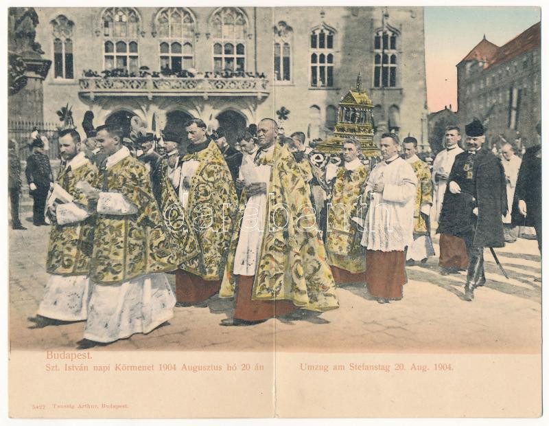 Budapest I. Szent István napi körmenet a várban 1904. augusztus 20-án. Taussig Arthur 5422. - Két részes kinyitható panorámalap / 2-tiled folding panoramacard