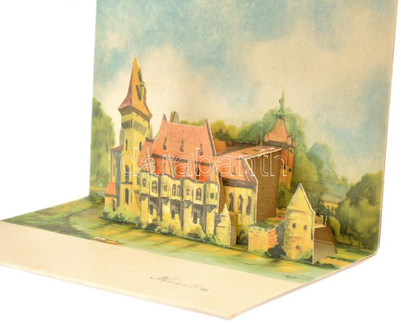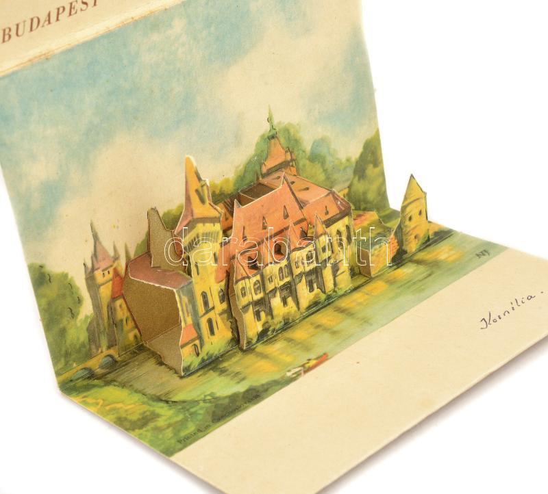 Budapest XIV. Vajdahunyad vára - modern kihajtható dimenziós képeslap. Képzőművészeti Alap / modern pop-up folding dimension postcard (21 x 10,5 cm) (Rb)