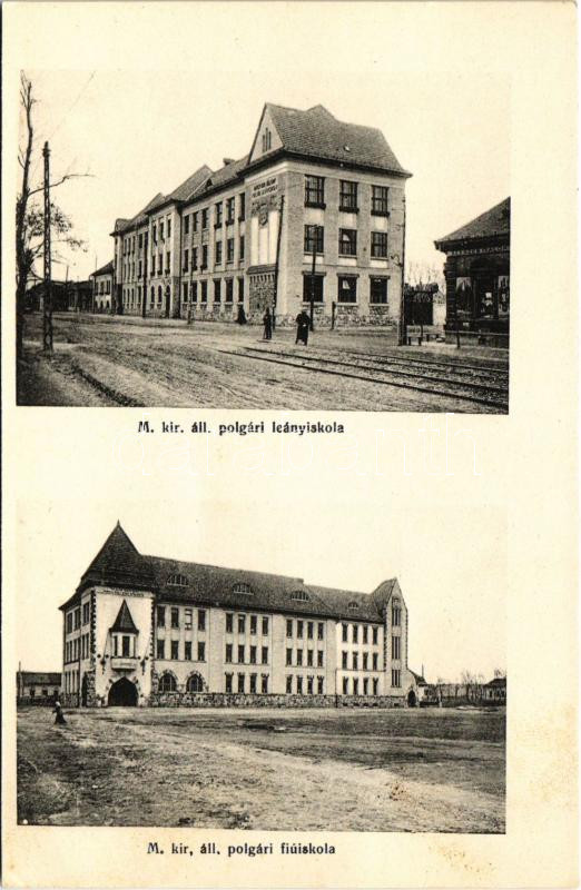 Leírás: Budapest XIX. Kispest, M. kir. áll. polgári leány és fiú iskola