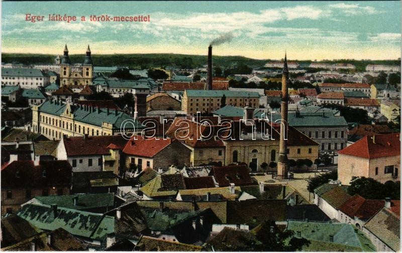 Eger, látkép a török mecsettel. Répás Béla kiadása https://www.darabanth.com/hu/428-Gyorsarveres/428.0/Kepeslapok/Magyarorszag~1500003/Eger-latkep-a-torok-mecsettel-Repas-Bela-kiadasa~II2723048