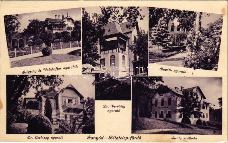 Leírás: Fonyód, Fonyód-Bélatelep, Szigethy és Volnhoffer nyaralók, Dr. Verebély nyaraló, Buzáth nyaraló, Dr. Gerlóczy nyaraló, villa, Sirály szálloda (fl)