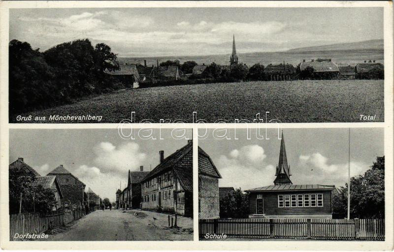 Leírás: 1938 Mönchevahlberg (Dettum), Total, Dorfstraße, Schule / general view, street view, school (EK)