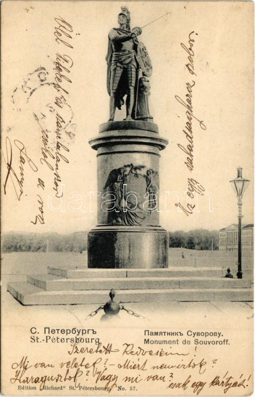 1905 Saint Petersburg, St. Petersbourg, Petrograd; Monument de Souvoro... https://www.darabanth.com/hu/428-Gyorsarveres/428.0/Kepeslapok/Oroszorszag~1500076/1905-Saint-Petersburg-St-Petersbourg-Petrograd-Monument-de-Souvoroff-statue-of-Alexander-Suvor~II2744523