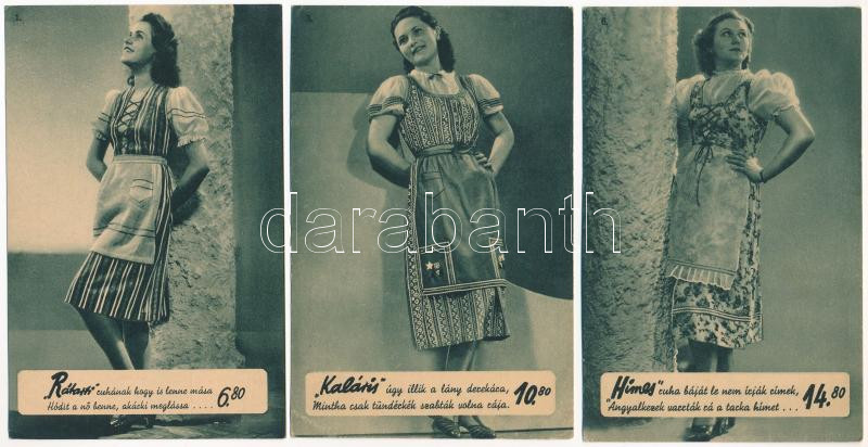 Leírás: Magyar Divatcsarnok reklám. Budapest, Rákóczi út 70-76. - 6 db régi használatlan képeslap