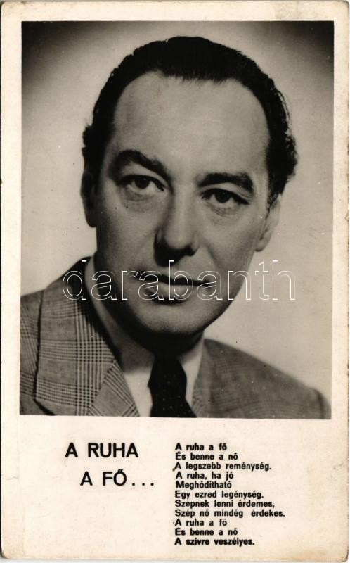 "A ruha a fő..." Bilicsi Tivadar dala a "Sziámi macska&... https://www.darabanth.com/hu/428-Gyorsarveres/428.0/Kepeslapok/Szinesz~1500044/A-ruha-a-fo-Bilicsi-Tivadar-dala-a-Sziami-macska-c-Mester-filmben-De-Fries-Karoly-verse-~II2722064