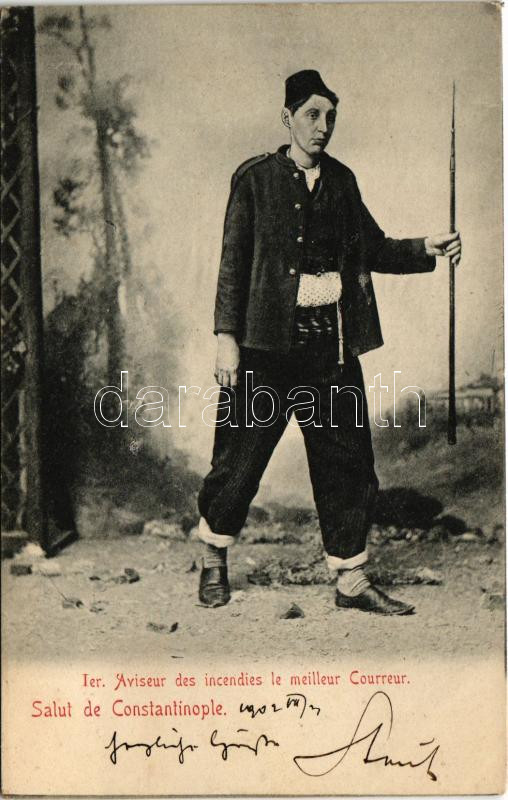Leírás: 1902 Constantinople, Istanbul; Ier Aviseur des incendies le meilleur Courreur