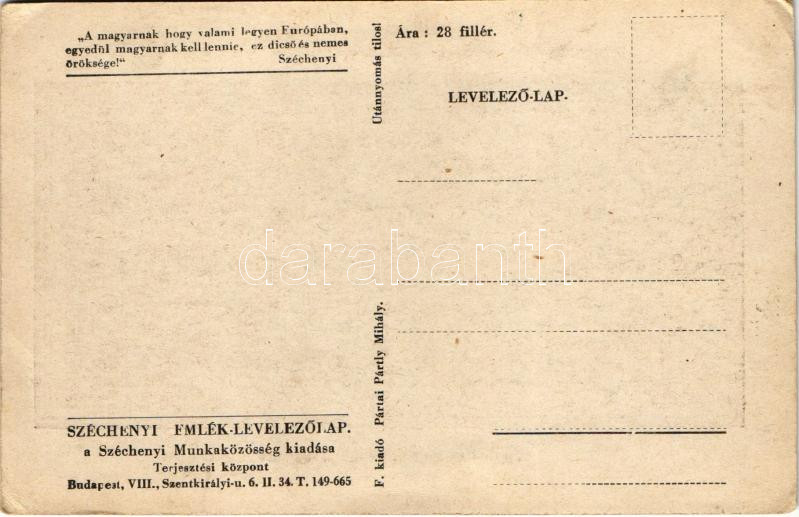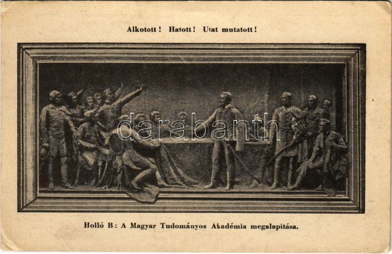 Alkotott, hatott, utat mutatott! Holló B.: A Magyar Tudományos Akadémia megalapítása. Széchenyi Emlék-levelezőlap. A Széchenyi Munkaközösség kiadása (EK)