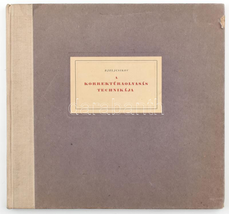 Leírás: Bejlcsikov, J. F. : A korrektúraolvasás technikája. hn., én., Nyomda- és Papíripari Dolgozók Szakszervezete. Félvászon kötés, kopottas állapotban