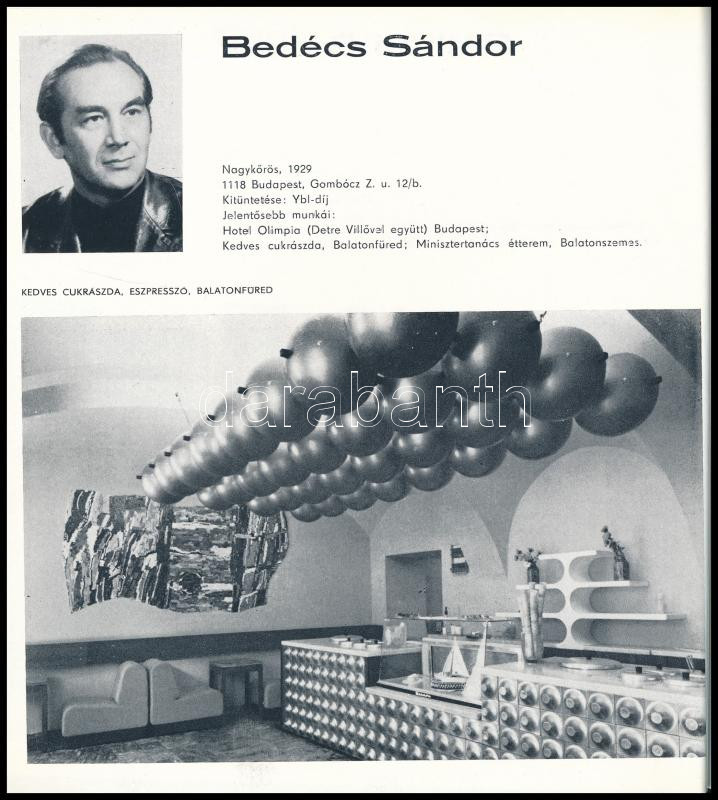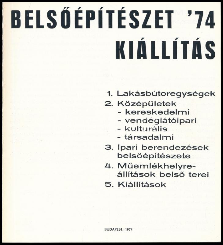 1974 Belsőépítészet '74 kiállítás. Szerk.: Hajduné Kovács Anikó. ... https://www.darabanth.com/hu/428-Gyorsarveres/428.0/Konyvek/Konyvek-Epiteszet-muveszet~1000012/1974-Belsoepiteszet-74-kiallitas-Szerk-Hajdune-Kovacs-Aniko-Bp-1974-Iparmuveszet~II2742690