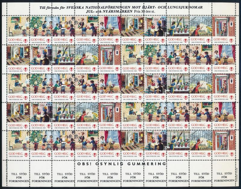 Leírás: Svédország 1988 Karácsony és újév 50-es levélzáró ív