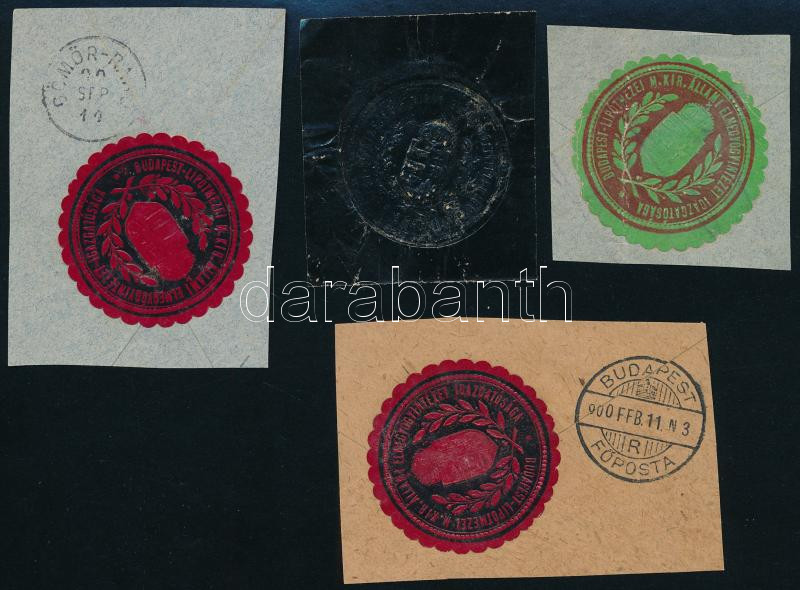 Leírás: cca 1900 Elmegyógyintézet 4 db pecsétbélyeg kivágásokon