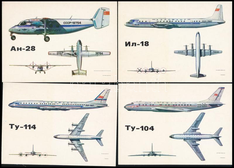 Leírás: 1989 Szovjet utasszállító repülőgépek, 16 db sorszámos lap ismertető szöveggel
