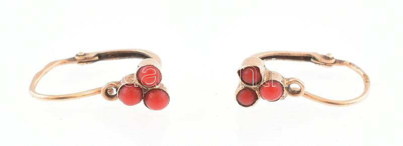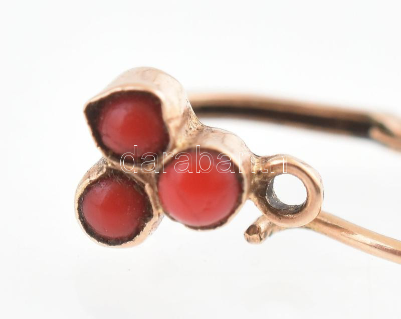 Leírás: Arany (Au/14k) fülbevaló, piros kövekkel. bruttó: 0,8g