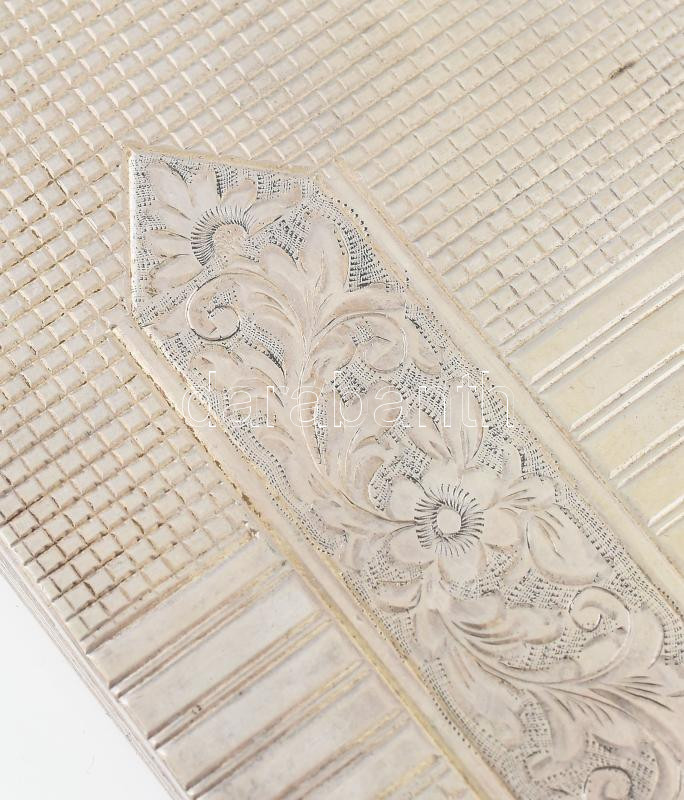 Leírás: Ezüst (Ag) cigarettatárca, vésett virág díszítménnyel, monogramozható, jelzett, 8x11cm, nettó: 135g