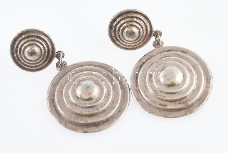 Leírás: Ezüst (Ag) fülbevalópár körkörös mintával, jelzett, h: 4,5 cm, nettó: 12,3 g