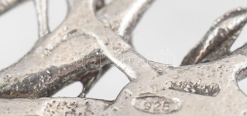 Leírás: Ezüst(Ag) extravagáns medál, jelzett, 3,5×6,5 cm, nettó: 14,6 g