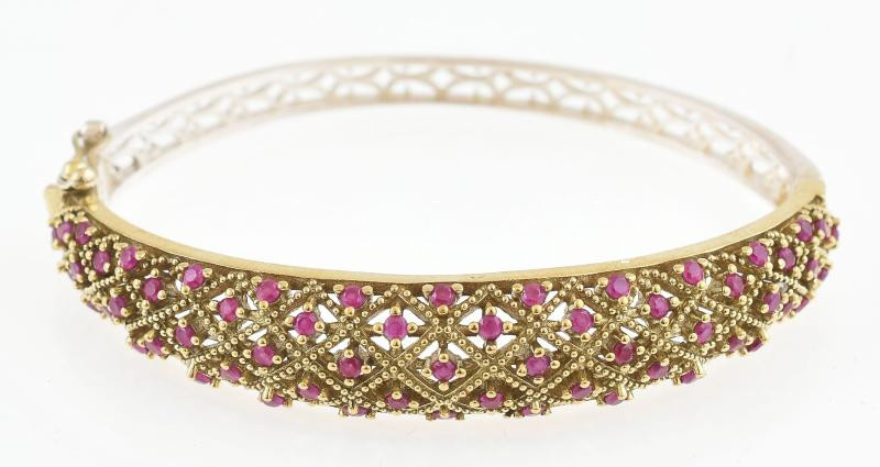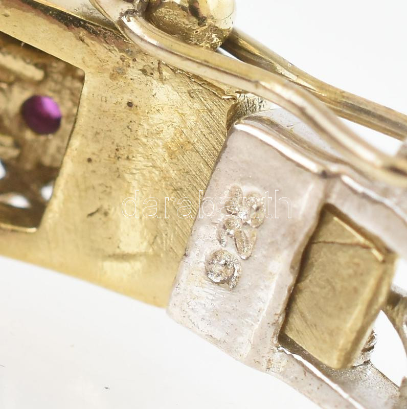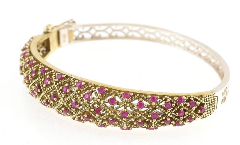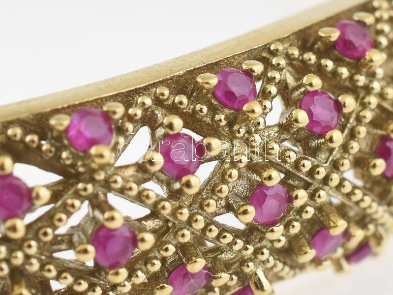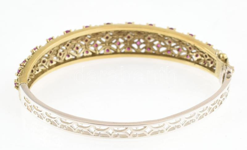 Leírás: Ezüst(Ag) karperec szintetikus rubinnal, jelzett, 6×5 cm, bruttó: 18,5 g