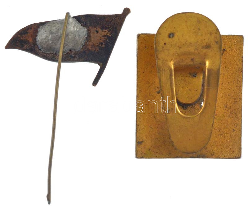 Leírás: ~1960. "MAHART" zománcozott fém kitűző + ~1930. zománcozott fém magyar zászlós gomblyukjelvény két lyukkal T:2