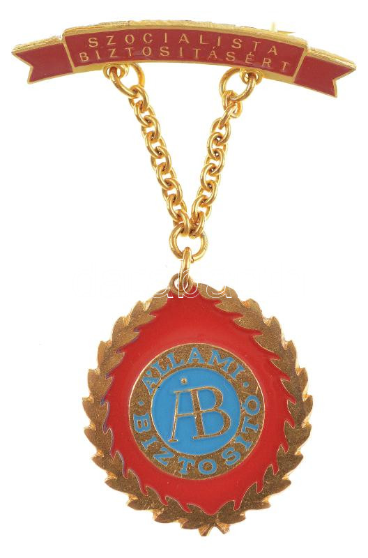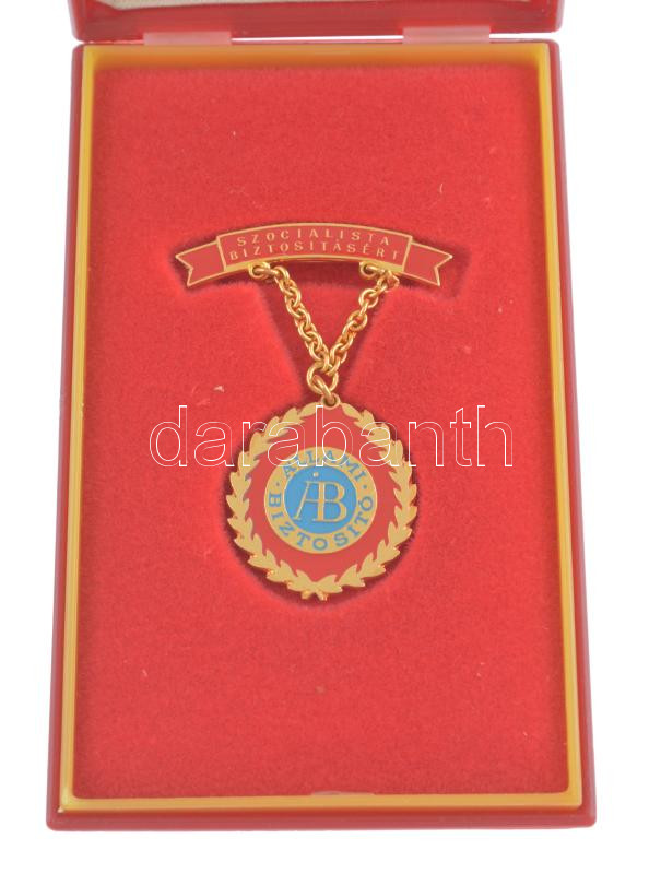 Leírás: ~1980. "Szocialista Biztosításért - Állami Biztosító" aranyozott, zománcozott kitüntető jelvény eredeti "ÁB" tokban T:1-