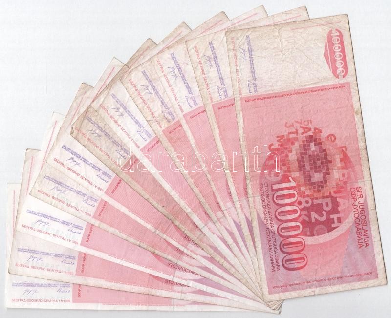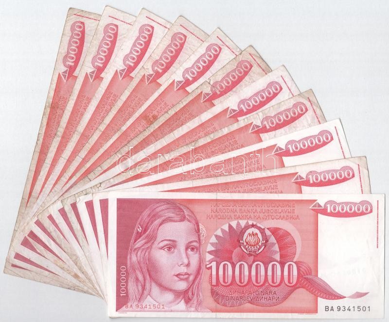 Jugoszlávia 1989. 100.000D (11x) T:III
