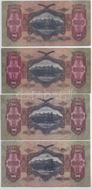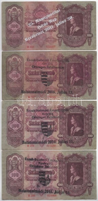 Leírás: 1930. 100P (4x) mindegyik bankjegy klf "Éremgyűjtők" felülbélyegzéssel T:III