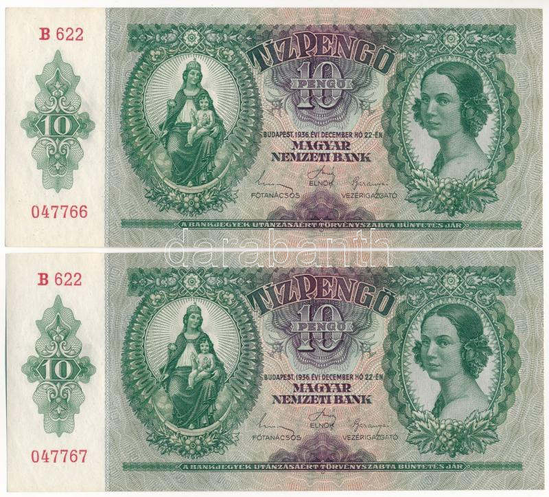 Leírás: 1936. 10P (2x) sorszámkövetők " B 622 047766 - B 622 047767" T:I-,II