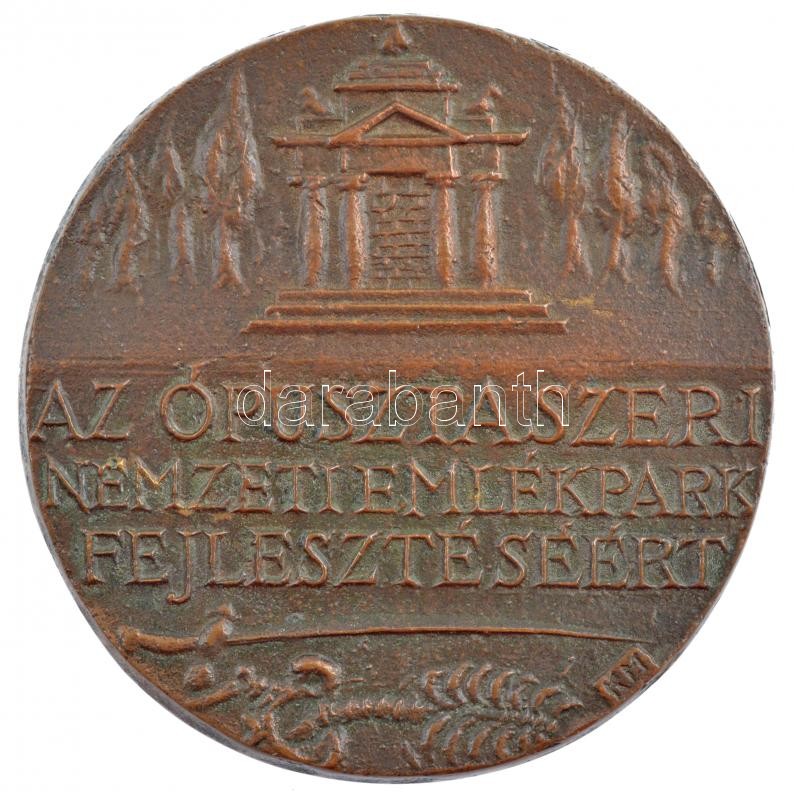 Leírás: Kincses Mária (1926-1988) (?) ~1983. "Az Ópusztaszeri Nemzeti Emlékpark fejlesztéséért" egyoldalas Br emlékérem (63mm) T:2 patina