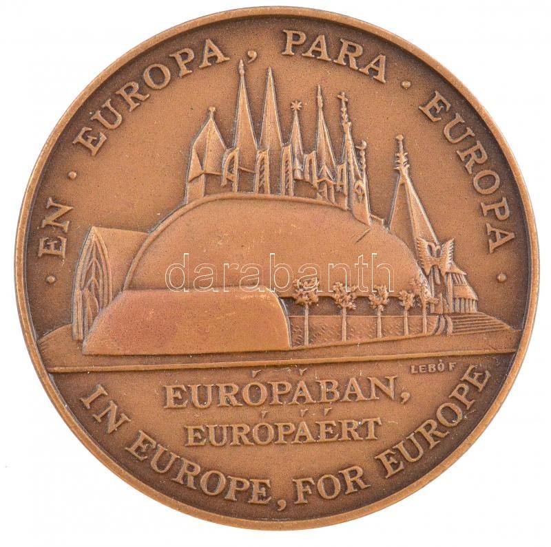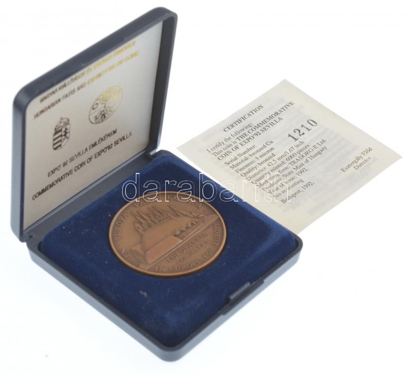 Lebó Ferenc (1960-) 1992. "Expo '92 Sevilla - Magyarország / Európában, Európáért" kétoldalas bronzozott Cu emlékérem "1210" sorszámú tanúsÃtvánnyal, eredeti dÃsztokban (42,5mm) T:1- egy karc