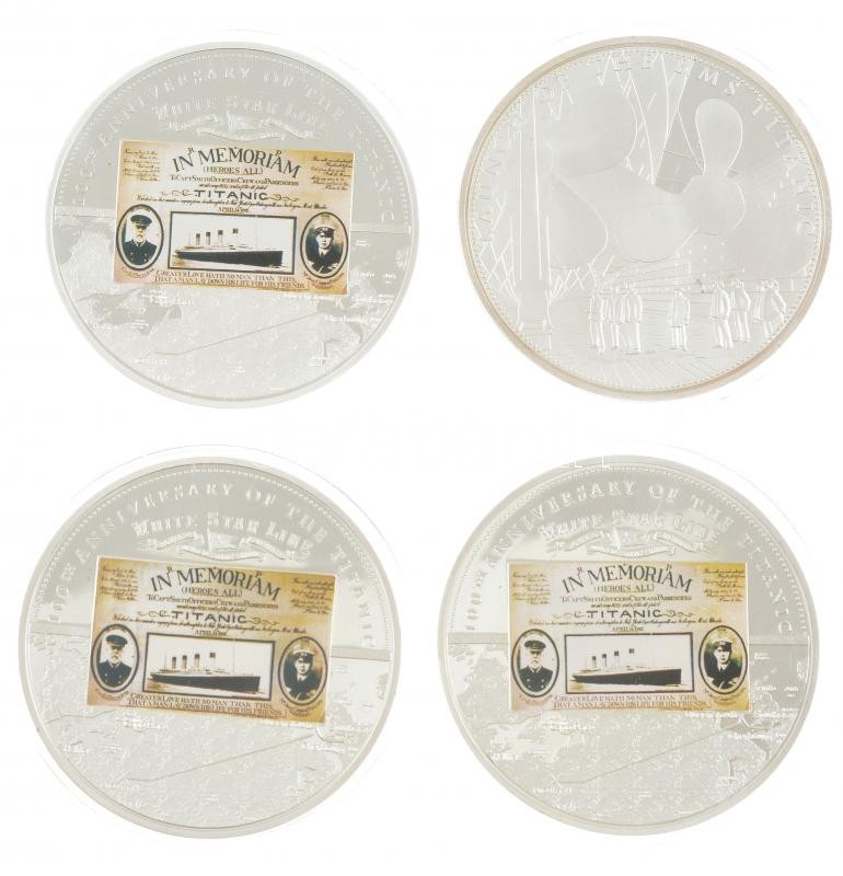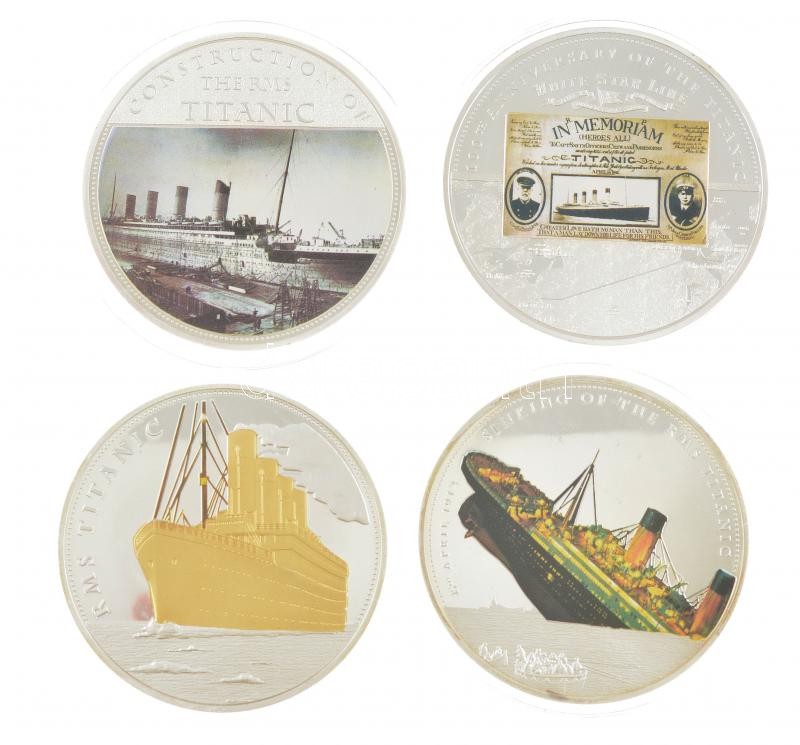 2012. 4 darabos "TITANIC" emlékérem tétel a tragédia 100. évfordulójára kiadva. Mind ezüstözött fém, részben multicolor festéssel valamint egyik részben aranyozva (70mm) T:PP