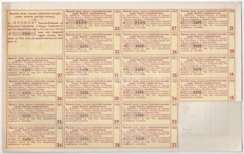 Leírás: Budapest 1942. "Hangya Termelő-Értékesítő és Fogyasztási Szövetkezet" üzletrésze 250P-ről, szelvényekkel, szárazpecséttel T:I-